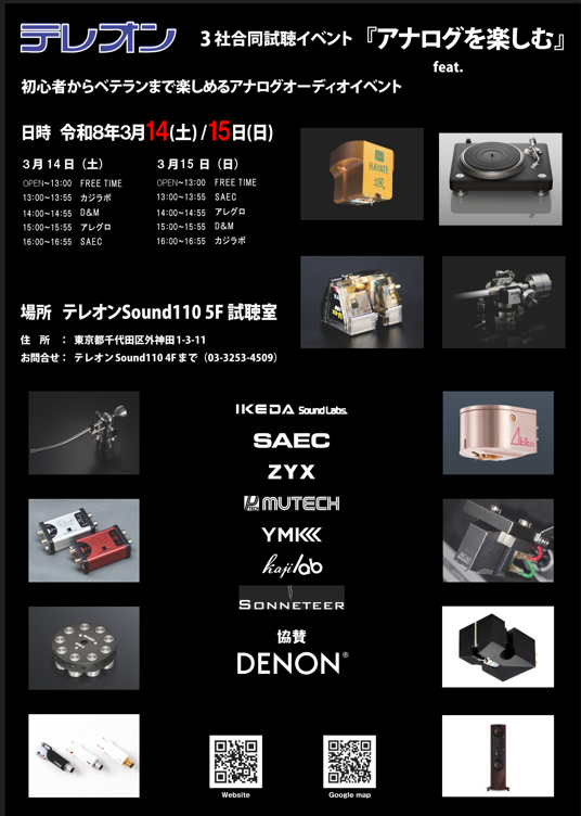 3/月14日(土)~15(日)3社合同試聴会イベント「アナログを楽しむ」開催@秋葉原テレオン